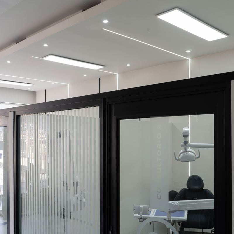 El blanco domina: muros lisos, mobiliario flotante, techos blancos con plafones que respiran claridad. No hay ruido visual. Solo precisión. Es un blanco que no busca frialdad, sino confianza; una base que permite que los detalles hablen con claridad quirúrgica.
